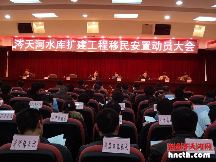 “移民工作的重点在江华,在移民安置工作中,我们将想移民之所想、急移民之所急,帮助移民建设美好幸福新家园。”“全心全意服务好移民群众,把移民当做自己的家人,真正使移民移得过来,安得下心,生活得更好。”“全力以赴抓好移民安置工作,讲政治大局,推工作进度,找办法对策,苦干巧干扎实干。”“保质保量建设好移民安置点,让移民群众能安居乐业;加大扶持力度,带领移民群众逐步富裕。”在1月18日下午召开的涔天河水库扩建工程移民安置动员大会上,江华县、道县、江永县、回龙圩管理区党委书记依次上台作表态发言,并向永州市政府递交移民安置工作责任书。